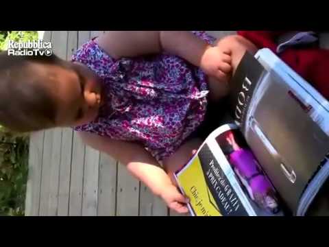 Questa bambina di solo 1 anno cerca di ingrandire un'immagine trovata su una rivista strisciando l'indice e il pollice, come se si trattasse di un I-pad!!